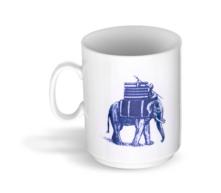 Чашка з білої порцеляни із зображенням блакитного слона.