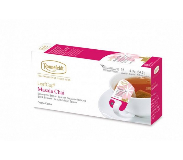 Чорний чай зі спеціями Ronnefeldt Masala Chai – індійський чорний чай Ассам зі спеціями, який здатний на мить занурити вас у казкову атмосферу Сходу. Відрізняється гарним відтінком темного бурштину, ароматами гвоздики, кориці та легкими мускатними нотами. У його трохи терпкому смаку превалює відголосок меду, чарівний східний аромат сухофруктів і гвоздики та легка гострота імбиру.