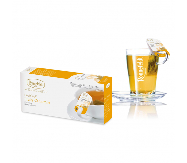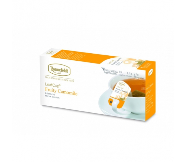 Чай Ronnefeldt Fruity Camomile LeafCup® (Роннефельдт Фруктова Ромашка)- лікувальний та заспокійливий трав'яний чай на основі квіток ромашки з ніжною солодкістю апельсинових пелюсток