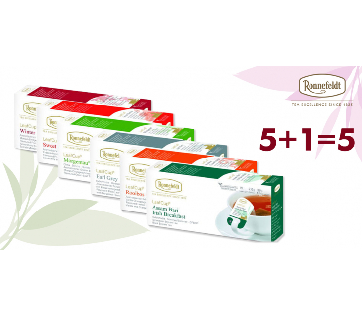 Набір із 6 упаковок Ronnefeldt LeafCup® – це 90 пакетиків вишуканого чаю найвищої якості.