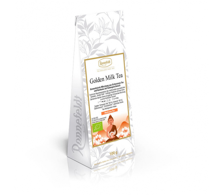 Чай Ronnefeldt Golden Milk Bio – екзотична інтерпретація традиційного аюрведичного напою “Золоте молоко”. Яскрава куркума та тонка вершкова нота дарують цьому унікальному купажу чорного чаю неймовірний смак.