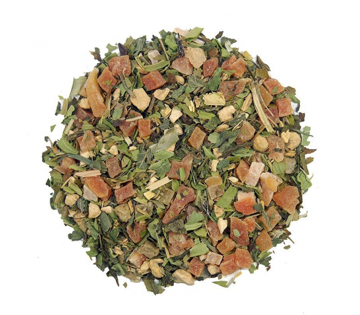 Склад: шматочки папайї (папайя, цукор) (44%), шматочки імбиру, мате, м'ята перцева, лимонна вербена, розмарин, зелений чай, лимонний мирт, шматочки ананасу (ананас, цукор), корінь солодки, ароматизатори, насіння гуарани