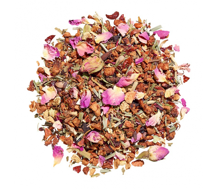 Склад: шматочки яблука, шкірка шипшини, листя ожини солодкої, ароматизатори, цедра лимона, підкислювач: лимонна кислота, корінь цикорію смажений, лимонник (5%), гібіскус, пелюстки троянд.