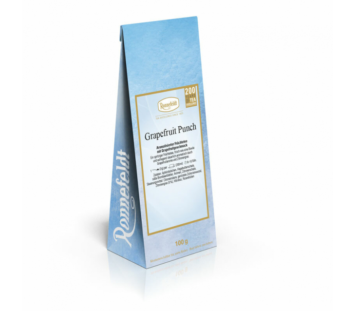 Ronnefeldt Грейпфрутовий Пунш (Grapefruit Punch) – яскравий фруктовий чай. Свіжий, як пунш, збудливо кислий і ароматний завдяки грейпфруту та лемонграсу.