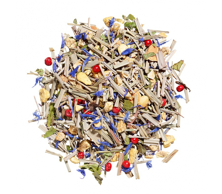 Склад: імбир, лемонграс, лимонна цедра, корінь лакричника, м'ята кучерява, волошка синя, рожевий перець