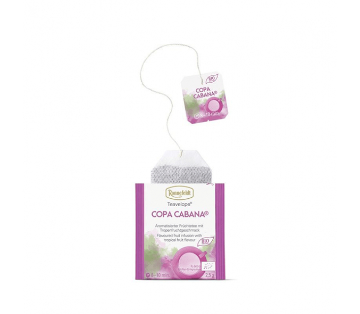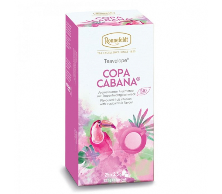 Фруктовий чай Ronnefeldt Copa Cabana Teavelope® (Роннефельдт Копа Кабана) має делікатний кисло-солодкий смак та ніжний аромат тропічних фруктів.