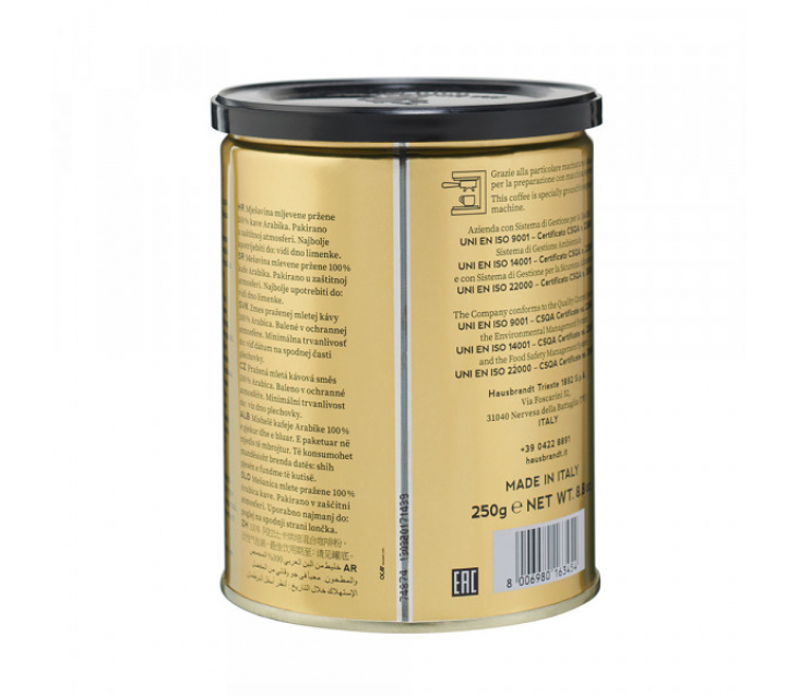 Кава мелена Hausbrandt Espresso (Хаусбрандт Еспресо) – це суміш 100% Арабіки середньо-темної обсмажки. Середнє тіло, ледь вловима кислинка, яскравий пряний аромат, насичений смак із відтінками чорного шоколаду та печива.